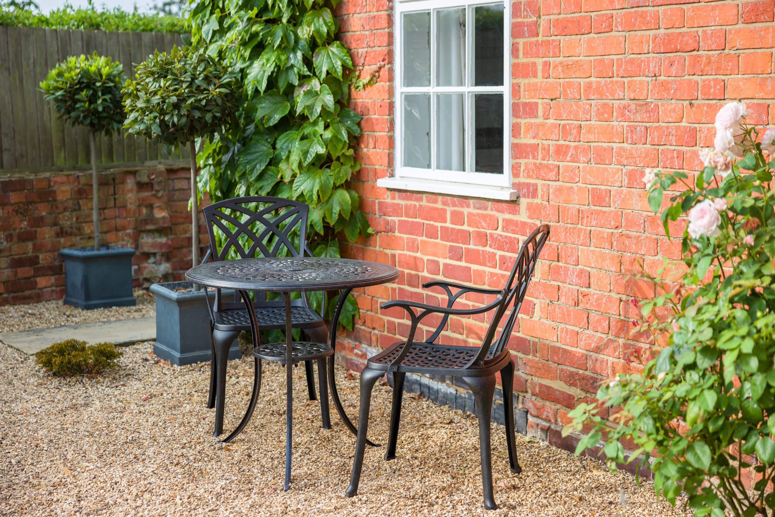 Le mobilier met aussi ces limites en évidence. Les pieds fins s’enfoncent plus facilement, certaines assises se déstabilisent, et une base de parasol légère peut bouger. Même un salon de jardin peut se retrouver de travers si la densité du gravier varie selon les zones.